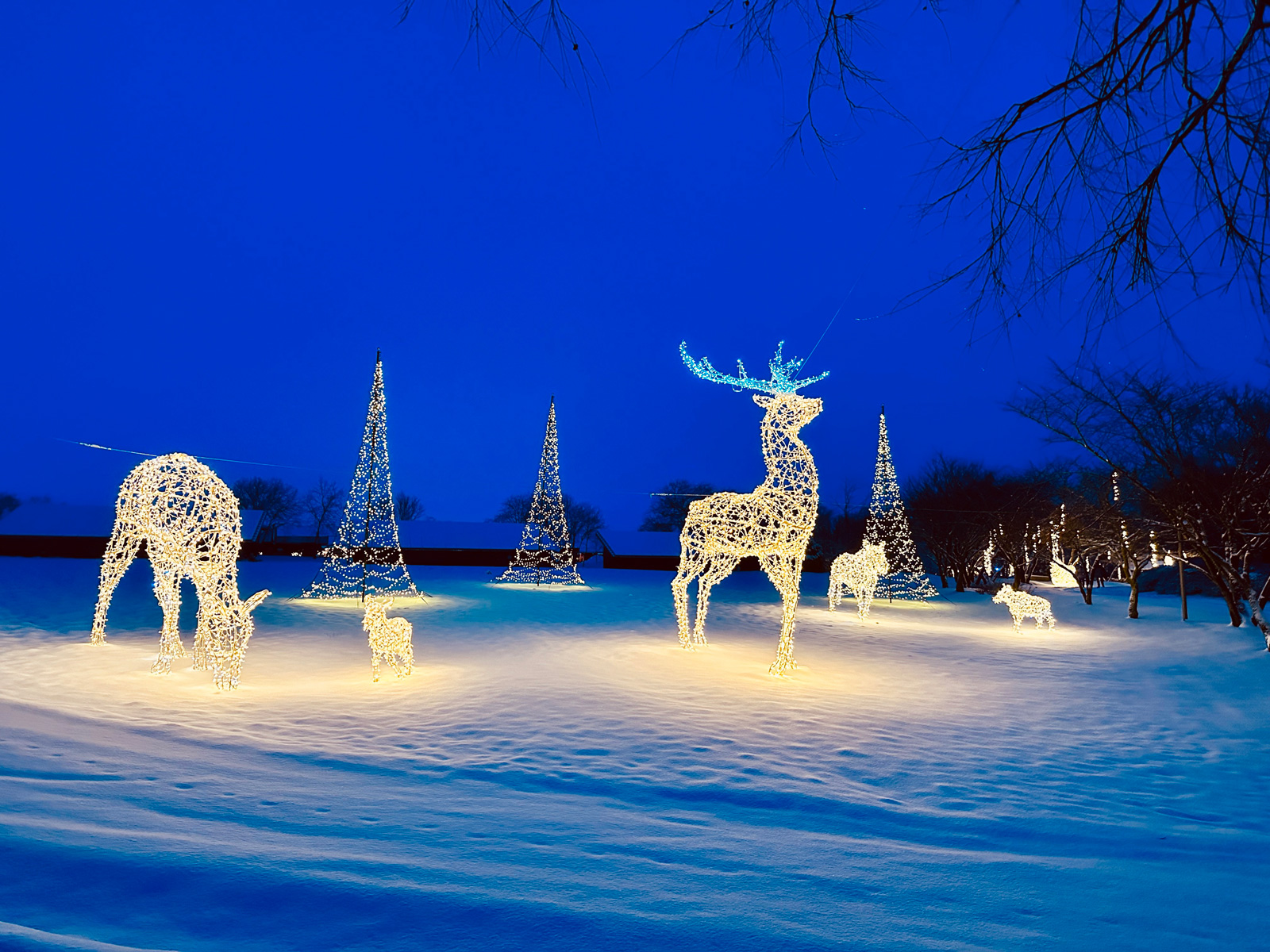 Neben den Lichterwelten locken zahlreiche Winterattraktionen wie Wellenflieger, Überschlagschaukel, Kunsteisbahn, Allwetter-Rutschbahn und der Wildpark. Bereits ab 13.00 Uhr können Besucher dort Hirsche, Steinböcke und andere Tiere entdecken – auf Wunsch auch bei einer geführten Wilderlebnistour. Zum Aufwärmen lädt die Indoorspielwelt mit Rutschen, Kletterlandschaften, Hüpfburgen und einem eigenen Bereich für Kleinkinder ein. Erwachsene entspannen im Gastronomiebereich oder werden beim Billard und Tischtennis aktiv. Winterliche Spezialitäten und heiße Getränke sorgen für Genuss und Gemütlichkeit. Wer den Winterzauber verlängern möchte, übernachtet im Hotel am Sonnenlandpark – nur 100 Meter vom Eingang entfernt.